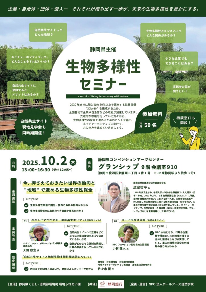 ◆静岡県主催「生物多様性セミナー&自然共生サイト現地見学会」開催!