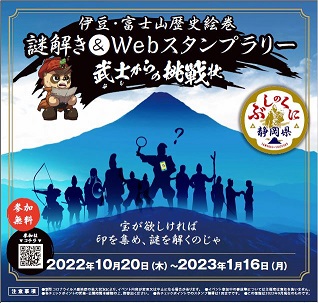 【静岡県東部地域】第3弾 伊豆・富士山歴史絵巻 謎解き&Webスタンプラリー“武士からの挑戦状”