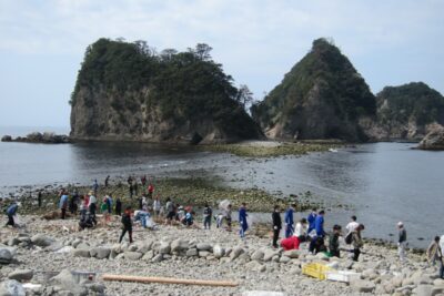 当日は、堂ヶ島の美しい海を守る海岸清掃の後、「トンボロ開き」を宣言。その後、瀬浜海岸から三四郎島まで約200メートルを歩く「トンボロウォーク」を実施します。