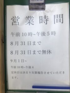 AM10時~PM4時 9/1~ (定休日は決まり次第お知らせします)