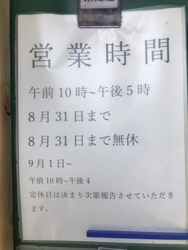 営業時間:AM10時~PM5時 8/31まで(無休)