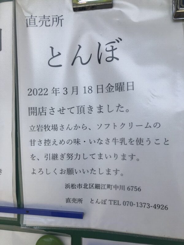 【浜松市北区】直売所「とんぼ」いなさ牛乳ソフトクリーム