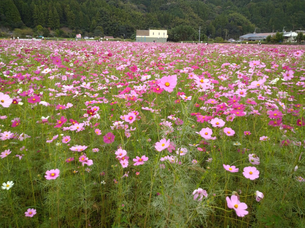 秋の殿を辺り一面に彩るコスモス畑には、毎年多くの観光客が訪れ美しいコスモス畑を楽しまれています。