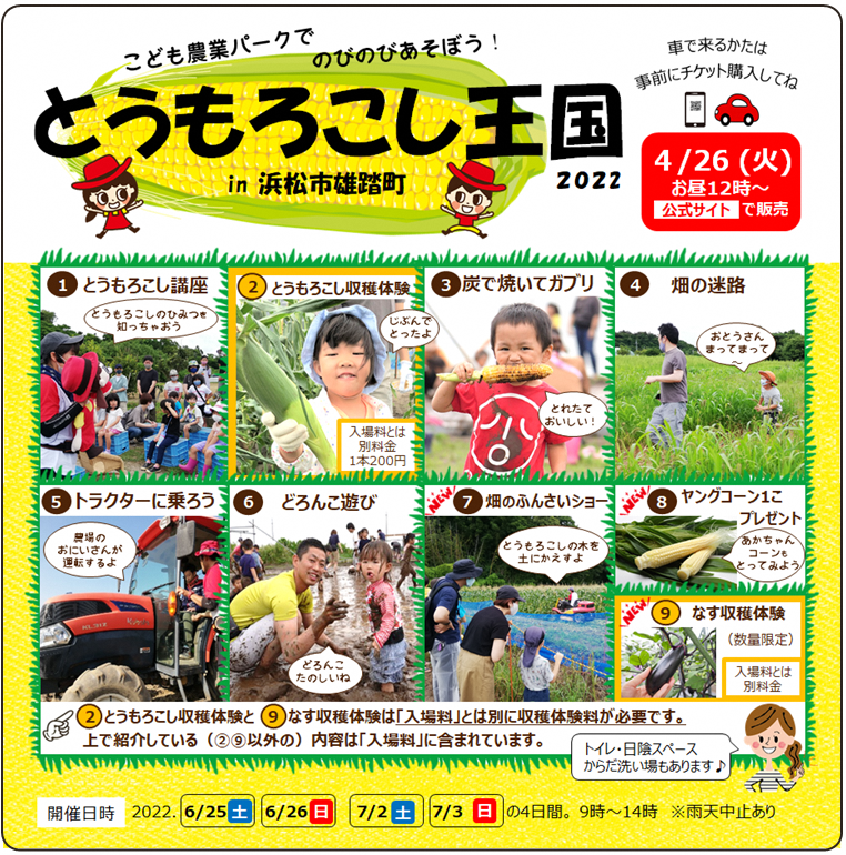 【浜松市】あったか農場 こども農業パーク『とうもろこし王国2022 in 雄踏町』