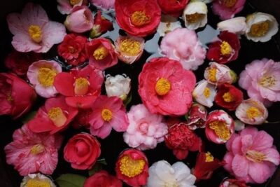 つばき園をはじめ、「つばきの館」での100種類以上の椿の一輪挿しや趣向を凝らした雛飾り展示、つばき観賞会ボランティア「つばきめぐりびと」による園内の案内を予定しております。