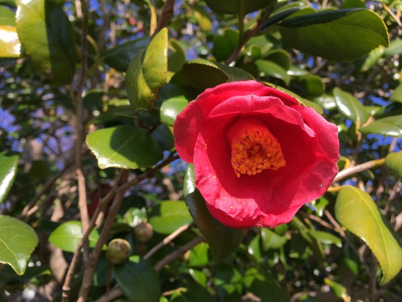 伊豆急川奈駅から徒歩約20分、JR伊東駅からは車で約15分。小室山公園つばき園には、約1万5000平方メートルの敷地に、園芸種を中心とした約1000種・約4000本のツバキが植栽されています。
