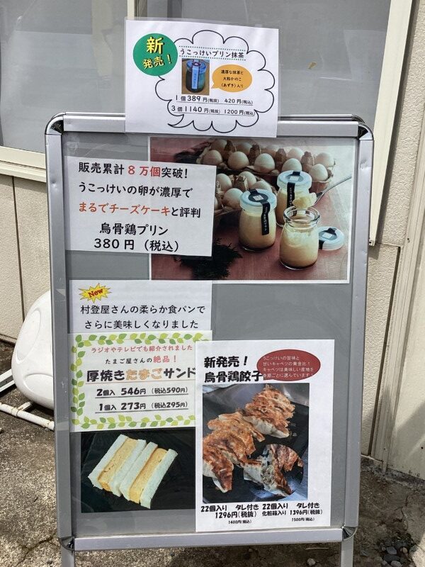 また、厚焼きたまごサンドや烏骨鶏餃子、烏骨鶏のフランクフルト、ハンバーグ、新茶など置いてありました!
