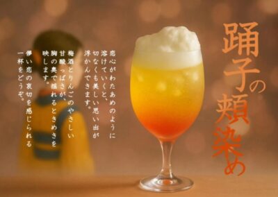 この「天城カクテル」は、大妻女子大学ライフデザイン科・安田ゼミの学生さんたちが、月ケ瀬の梅シロップや梅酒を使って開発してくれたものです。