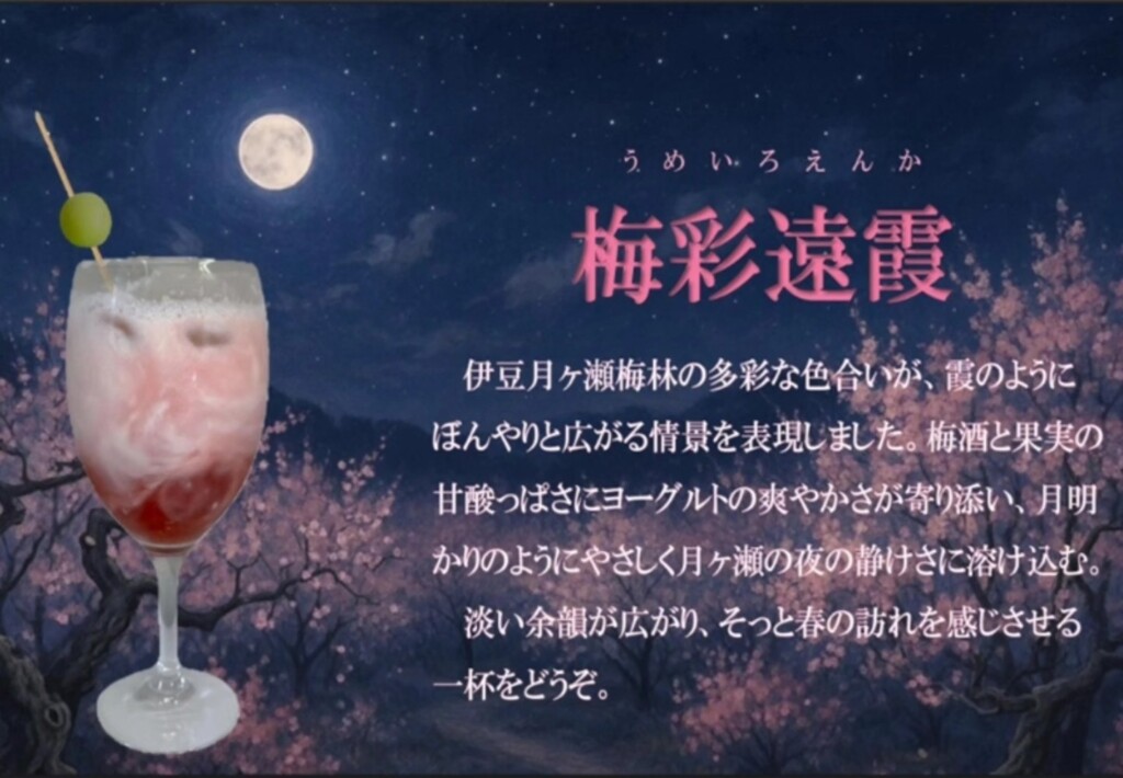 2月22日(日)から開催の「伊豆月ヶ瀬梅林梅まつり」最終日【3/8(日)】限定で、「天城カクテル」の販売をします!