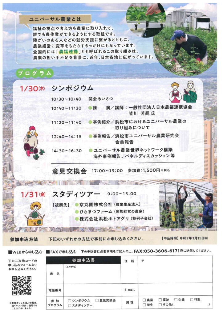【浜松市】ユニバーサル農業 20周年記念シンポジウムinはままつ開催!