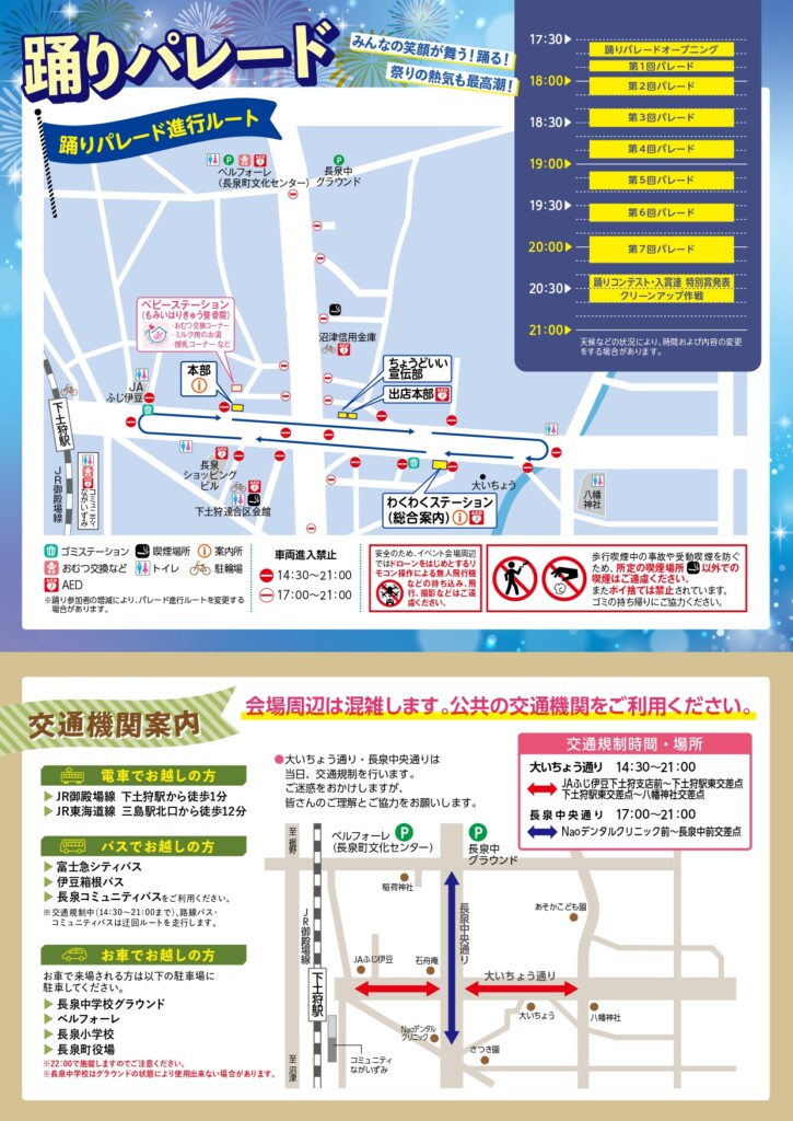 大いちょう通り・長泉中央通りは当日交通規制を行います。