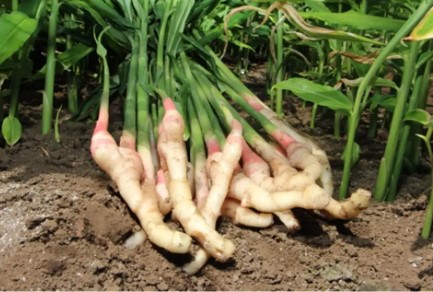 「ヤマツ葉しょうが」は、箱根西麓・三島市塚原地区(通称:ヤマツ)で栽培される香り高い若しょうが。火山灰土と涼風に育まれ、やわらかな辛みと鼻に抜ける爽やかな香りが特長です。種子生産から出荷までを一貫管理し、静岡県「しずおか食セレクション」にも認定されています。しかし、その高い品質の維持とかかる手間・栽培期間の長さなどにより、年々生産者数は減少、ピーク時から比べるとその数は半減し、現在は5件のみと非常に限られています。また旬は6月末から9月上旬と短く、主に地元を中心に流通していることからも、なかなか多くの方に知っていただけていない現状があります。