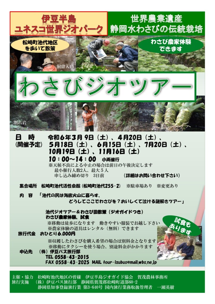 松崎町では「池代の民は海底火山に暮らす、どうしてここでわさびを?おいしくて泣ける謎解きツアー」が開催されます。