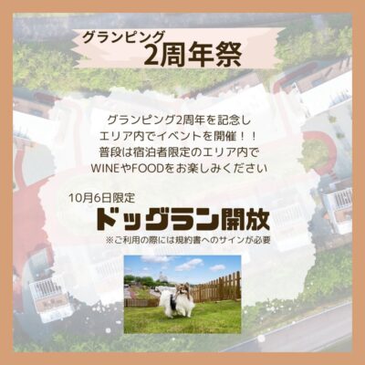 中伊豆ワイナリーでは、グランピング2周年を記念して、グランピングエリア内にてイベントを開催いたします!