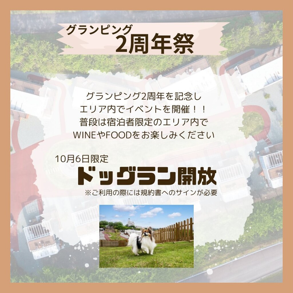 イベント開催中は天然芝のドッグランも無料開放します。