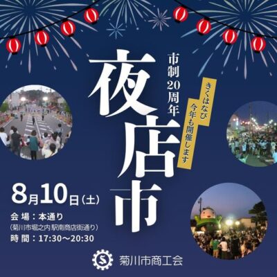 コロナ禍で中止となっていた菊川名物「夜店市」が5年ぶりに駅南本通りで開催します。