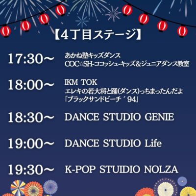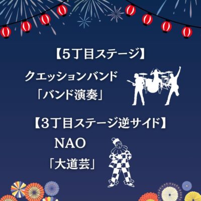 ※3丁目ステージ、4丁目ステージ、5丁目ステージでは様々なパフォーマンスが行われます。出演者や演目紹介はチラシをご覧ください!