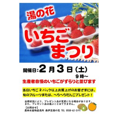 南伊豆湯の花では、大人気のいちごまつりを開催します!