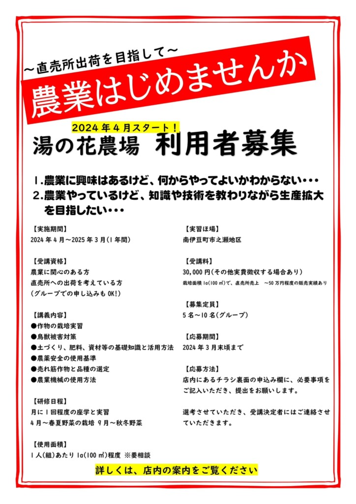 【問合せ】農林水産物直売所 南伊豆湯の花(0558-62-3191)