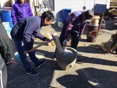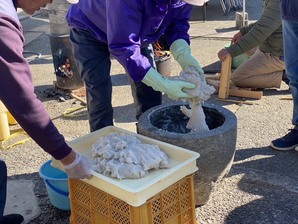 この日は、臼と杵でこんにゃくを作りもやっており、温かなできたてのこんにゃくを買って帰り、みそ田楽にして食べたら、歯ごたえがあってプリンプリン。