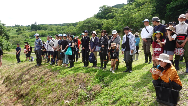 協働している静岡大学の棚田研究会のメンバー初日は約40名が参加して、もテント設営や田植えをサポートしています。学生の若いパワーが地域の方々を支えています。