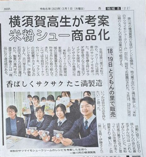 掛川市の地元高校生が考案!たこ満が製造「米粉サツマイモシュークリーム」が商品化!とうもんの里で2023年18・19日に販売!