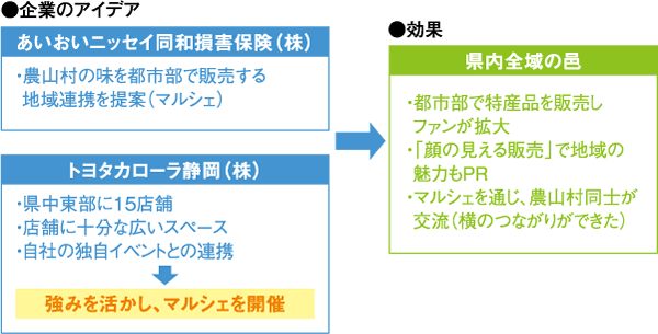 マルシェでは地域の方が直接販売を行うので地域の魅力もPRすることができ、新たなファン獲得のきっかけにもなっています。企業側も接点のなかった農山村との新たなネットワークができました。企業の強みを活かし双方にメリットのある邑マルシェは今後も開催される予定です。