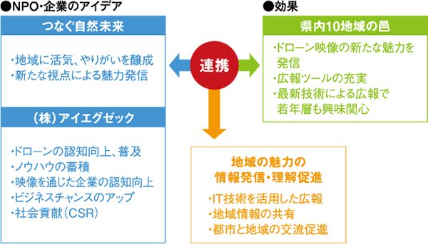 むらサポ企業会員である「NPO法人つなぐ自然未来」と「㈱アイエグゼック」は県内10地域の邑をドローンで撮影したPR動画を制作しました。空から俯瞰する緑豊かな森や里山、美しい清流。そして自然と共に暮らす人々のいきいきとした表情であふれた動画は、地域の魅力を新たな視点から伝える強力な広報ツールとして注目されています。多くの人に農山村の想いを伝えたい、様々な場面で動画を活用してほしいとの企業側の提案で動画の使用許可は不要、加工も自由です。