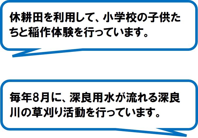 この地域も、農業従事者が減っていく中、農業や、農地の形の移り変わりに合わせた組織で活動をしていきたいと考えています。