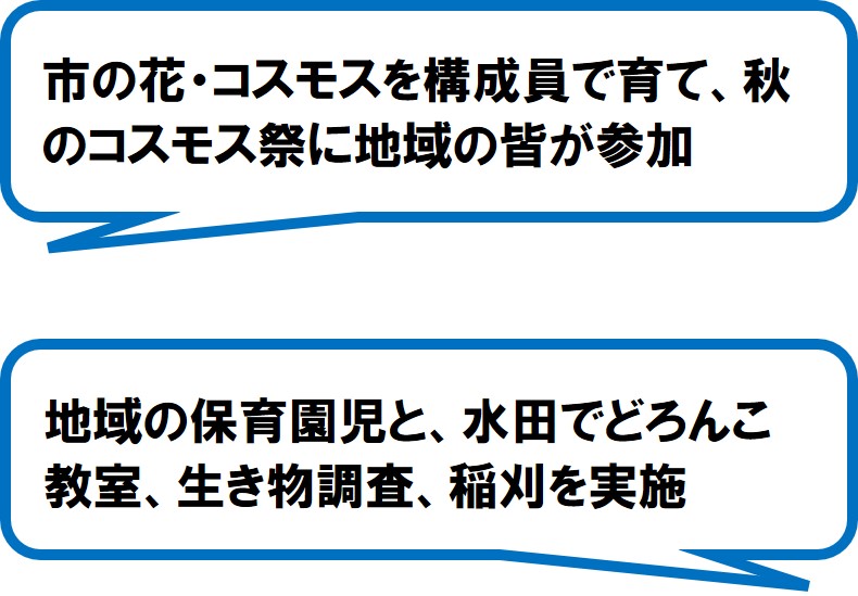 また、混住化などによる住民意識の多様化もあり、農業への理解を深めてもらうため地域ぐるみの活動を積極的に実施し、保育園と連携した生き物調査や農業体験なども継続しています。