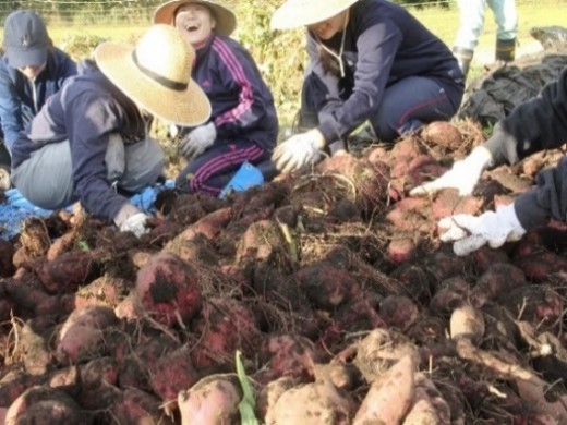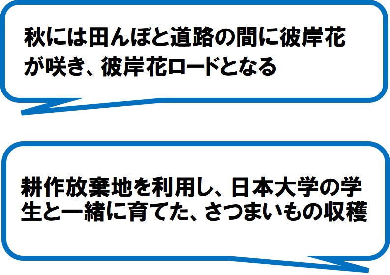 この地域は、日本大学生物資源科学部と協働して、休耕田で稲作をしたり、さつまいもから焼酎を作っています。