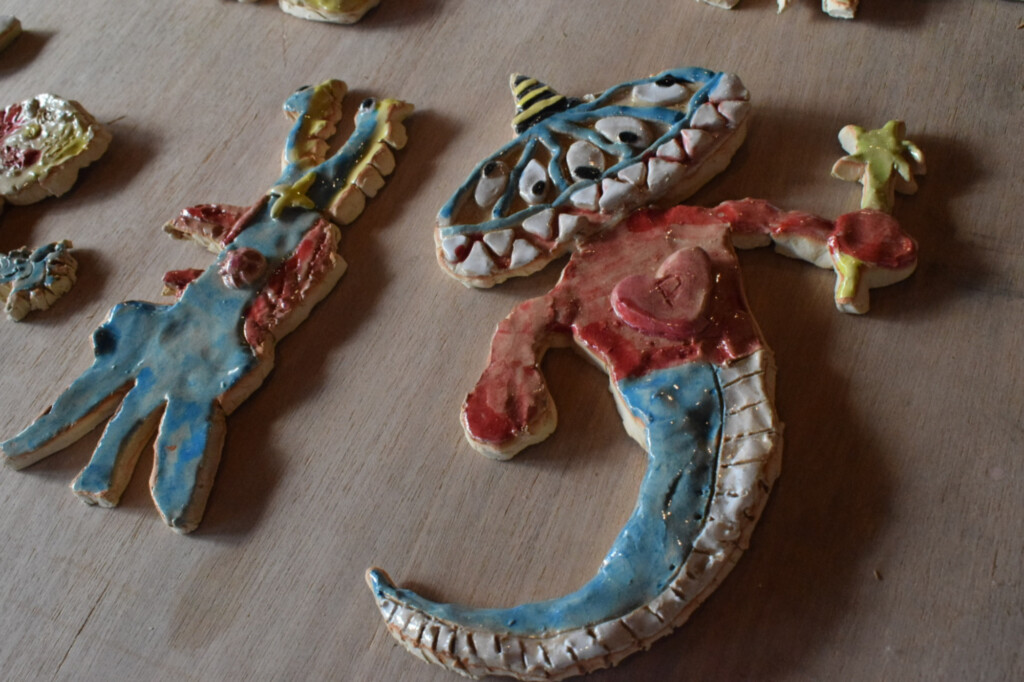 今回はハビさんと楡木さんの2名のアーティストをイベントのメインとし、楡木さんの作品「風の音」や、ハビさんの作品や瀬戸谷小学校でワークショップを行った際に作った「瀬戸谷モンスター」が展示されていました。