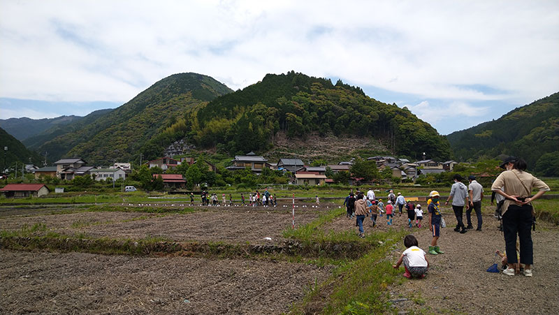 この大川地区にある大川オートキャンプ場で、5月29日に「迷宮入りのひまわり迷路プロジェクト 2千本のひまわりを植えよう!!」が行われました。