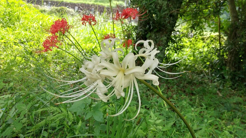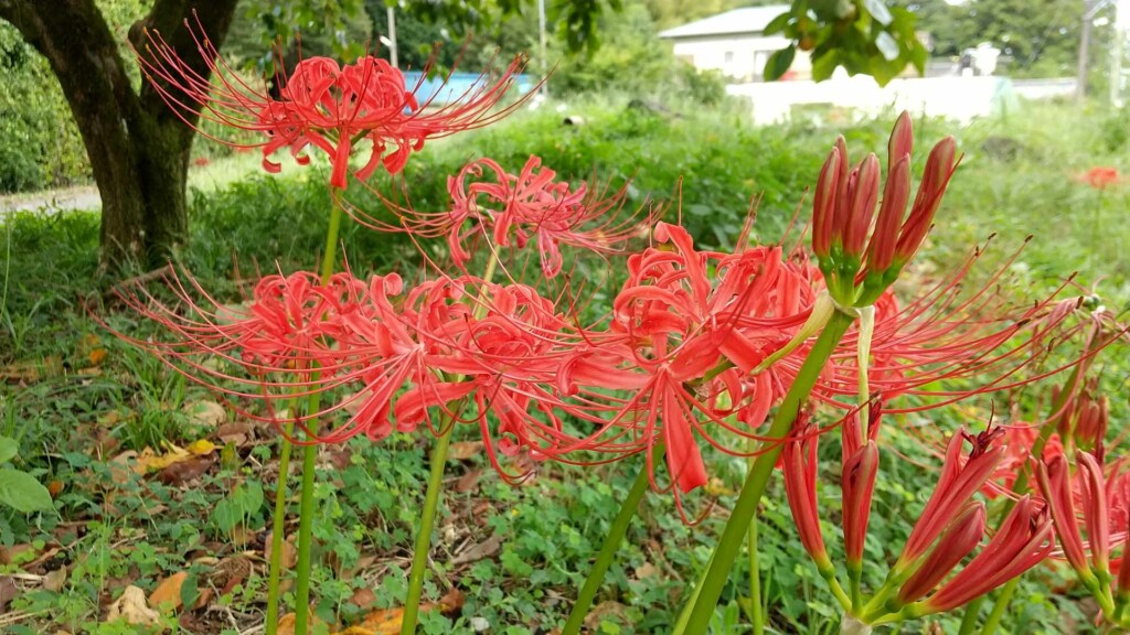 十足のヒガンバナは、100年以上昔からこの地を通る人々の目を楽しませてきました。未来へこの美しい景観を引き継ぎ、その景観をもっと多くの人に楽しんでもらおうと地域の皆さんが協力し、土手への植栽など「ヒガンバナ花街道」活動を行っています。おかげさまで、田んぼのあぜ道だけでなく県道沿いにもそこかしこにヒガンバナが咲いていて、季節を思いっきり感じることができました!異常な暑さでも、時期になるとちゃんと咲くのが不思議ですね。
