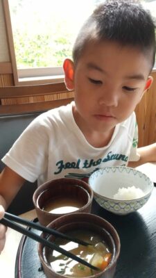 息子は野菜たっぷりの味噌汁と手作りこんにゃくが気に入って、みんなの分もペロリ。