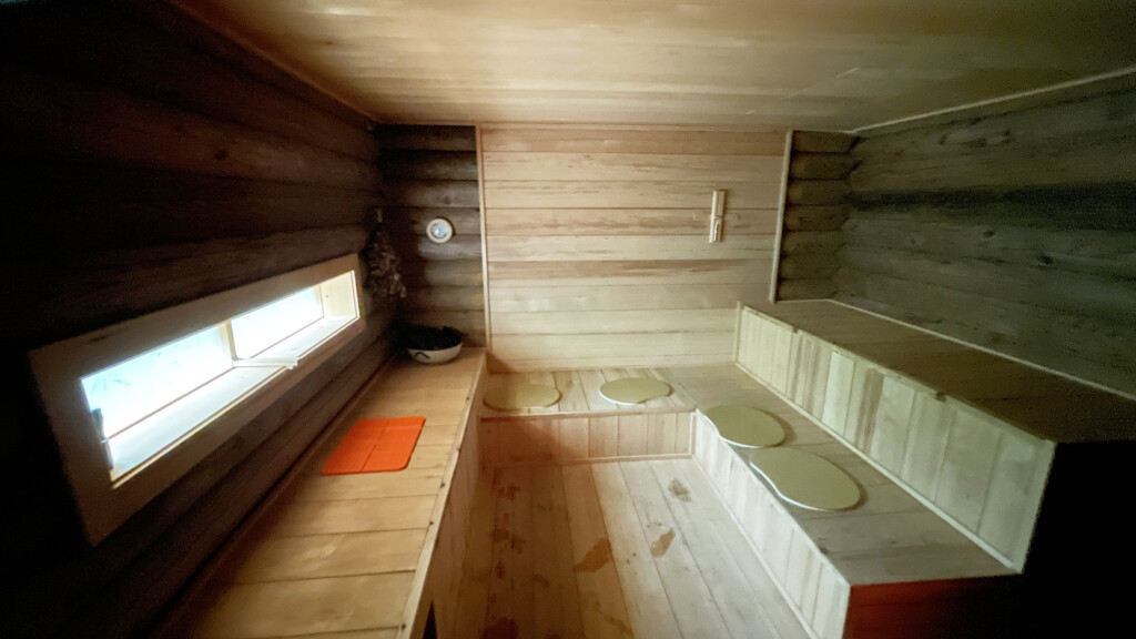 サウナの中には火力の高い日本製の薪ストーブを設置。紅茶や緑茶、ほうじ茶を使用したロウリュも楽しめます。伺った日はほうじ茶が使用されており、サウナストーンにかけるとジュワジュワと音を立てながらお茶の甘い香りがサウナ内に広がりました。サウナの温度は比較的入りやすい70〜90℃に設定。一緒に行ったむらサポのスタッフも、「普段サウナがあまり得意ではないので、無理だったらすぐに出るつもりでいたけれど、この温度なら大丈夫」と言いながらサウナを楽しんでいました。