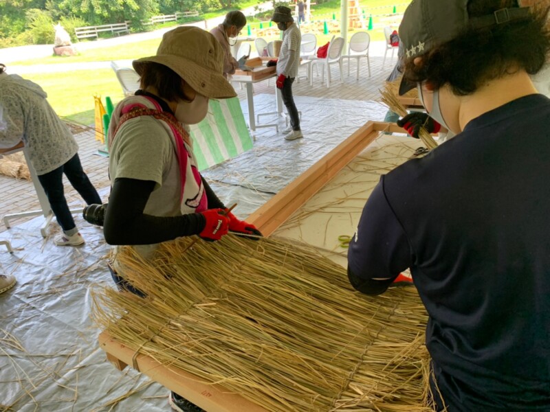 ①7/10(土)〜14(水)『わら組作業』(わらを麻ひもで骨組みに縛っていく作業)